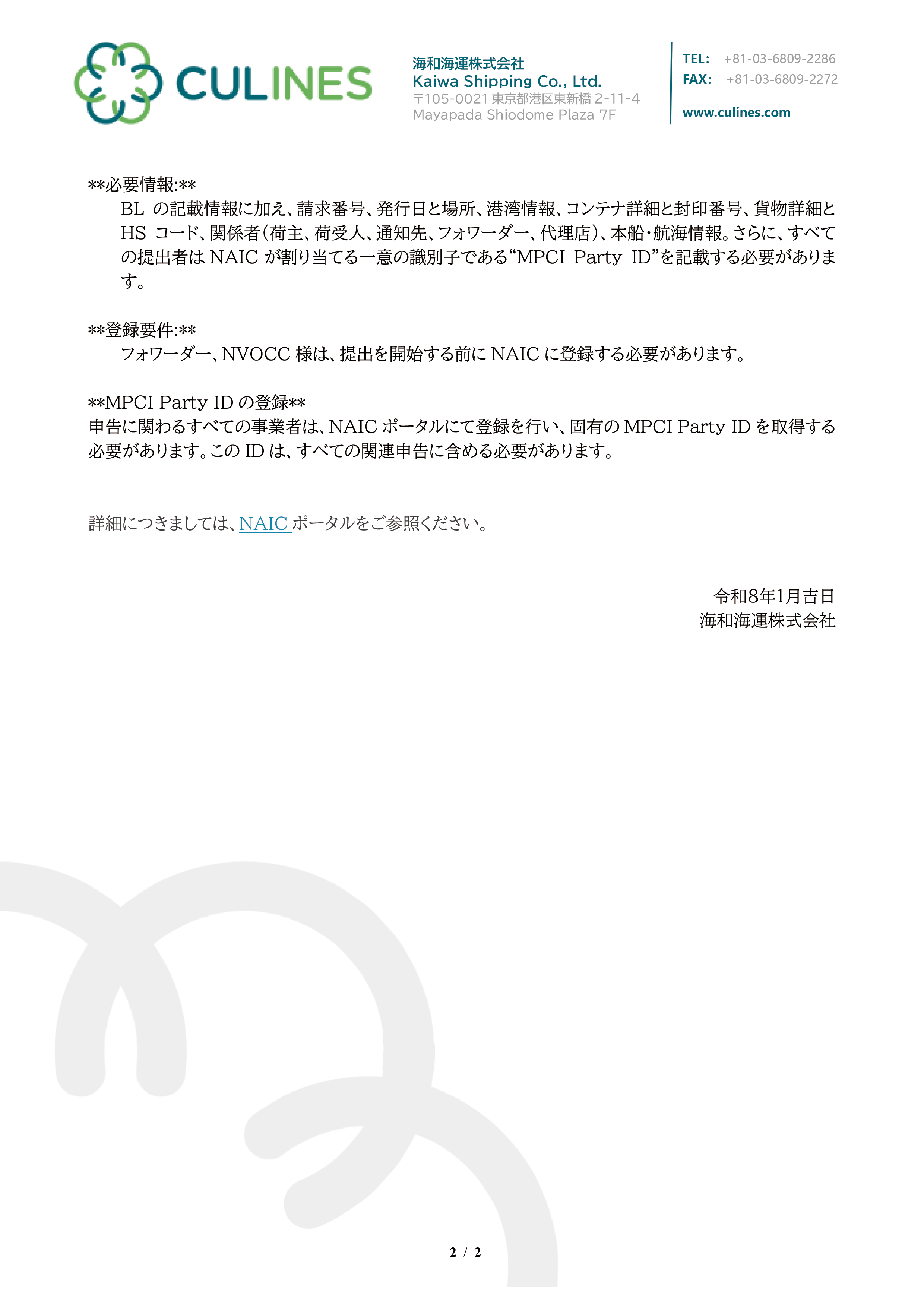 UAE 税関必須要件:船積み 24時間前までのMPCI 申告義務